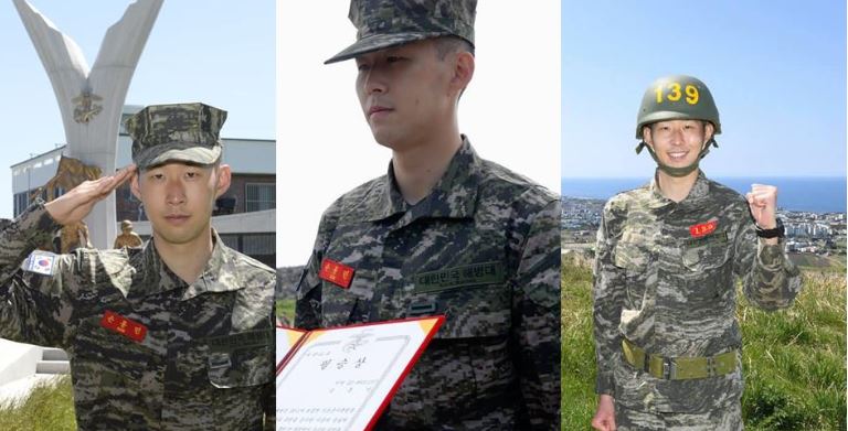 기초군사훈련을 마친 손흥민 선수는 병역법상 보충역으로 별도의 군번을 받으며 최종 계급은 해병 이병이다. 손 선수는 34개월 동안 현역 선수로 활동하면서 일정 기간 봉사활동(544시간)을 이수하면 병역 의무를 마친다.