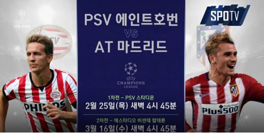 유럽에서 짠물 수비를 자랑하고 있는 아틀레티코 마드리드가 3시즌 연속 8강 진출에 도전한다. 상대는 10년 만에 16강 무대에 오른 PSV 에인트호벤이다. PSV 에인트호벤은 3승 1무 2패(승점 10)로 조별 리그 B조 2위를 기록했다. 볼프스부르크가 맨체스터 유나이티드를 잡으면서 극적으로 16강에 합류했다. PSV 에인트호벤은 네덜란드 리그에서 아약스에 승점 1 앞선 1위를 달리고 있다. 막심 레스티엔, 루크 데 용(2골)의 골 결정력이 아쉽지만 수비수와 미드필더의 경기력은 좋았다. 아틀레티코 마드리드는 올 시즌 스페인 리그 23경기에서 11골을 내줬다. 얀 오블락 골키퍼의 방어와 후안프란, 디에고 고딘, 호세 히메네스, 필리페 루이스의 포백은 유럽에서 가장 단단하다는 평가를 받는다. 챔피언스리그에서는 4승 1무 1패(승점 13)로 C조 1위를 기록했다. 공격은 앙트완 그리즈만의 비중이 높다. 앙헬 코레아, 루시아노 비에토, 페르난도 토레스의 분발이 필요하다.아틀레티코 마드리드는 미드필더 보강에 신경 썼다. 아우구스토 페르난데스(셀타 비고), 마티아스 크라네비테르(리베르 플라테, 임대 복귀)가 합류했다. 공격수 잭슨 마르티네스는 중국 리그로 떠났다. PSV 에인트호벤은 네덜란드 대표 출신 미드필더 마르코 판 힌켈(첼시)을 임대했다. 힌켈은 올 시즌 전반기까지 스토크 시티에서 뛰었다. SPOTV 중계진에서는 8명 모두 아틀레티코 마드리드의 8강 진출을 예상했다. 1