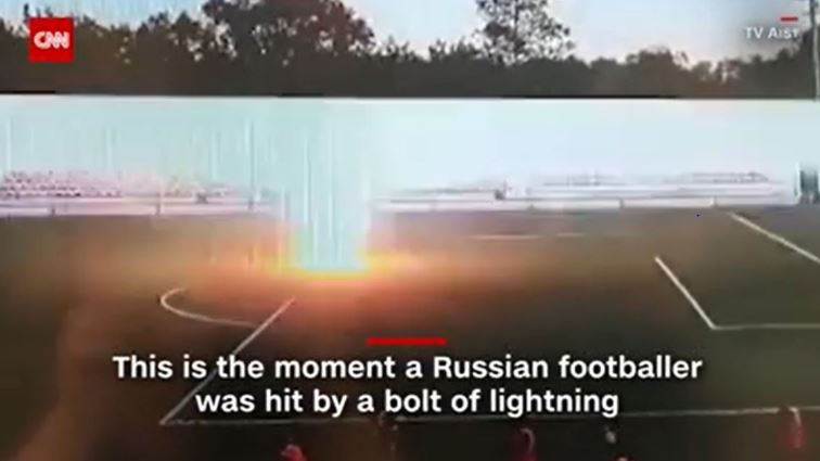 한 번 번쩍이더니 축구선수가 쓰러졌다.