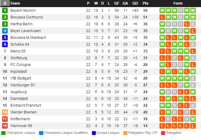 함부르크 지난 라운드 프랑크푸르트 전에서 0-0 무승부를 거두고 리그 12위에 랭크되어있다. 올시즌 11번의 홈 경기에서 단 3승에 그칠정도로 홈 경기에서도 부진한 성적을 거두고 있다. 잉골슈타드는 지난 라운드 브레멘 전에서 2-0 승리를 거두고 리그 10위를 유지하고 있다. 올시즌 팀 득점이 16득점 일정도로 리그 최악의 공격력을 보여주고 있지만 승점을 착실히 얻고 있다. 단 최근 원정 4경기에서 전패를 당하며 원정 에서는 부진한 모습을 보이고 있다.