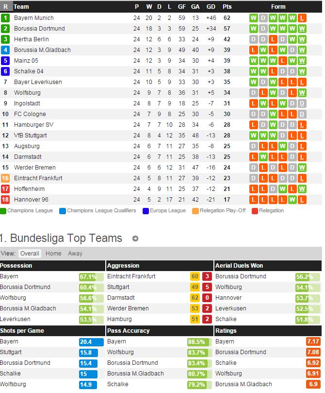 함부르크는 지난 라운드 살케 전에서 2-3 패배를 당하면서 리그 11위에 머물러있다. 최근 리그 10경기에서 단 1승만 거둘정도로 최근 경기력 및 성적이 매우 좋지 못한 상황이다. 반면 베를린은 지난 라운드 프랑크푸르트 전에서 2-0 승리를 거두면서 최근 리그 2연승과 동시에 리그 3위를 유지하고 있다. 칼루와 이비세비치 2명의 공격수가 제몪을 다 해주면서 공격을 이끌고 있고 최근 맞대결에서도 5승 1패로 우세에 있다.