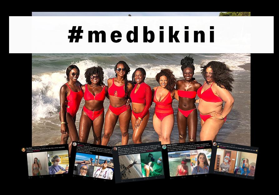 한 여성 의사는 자신의 비키니 셀카와 함께 "의사들이 비키니를 입고 술을 마시는 사진을 소셜미디어에 올리는 게 전문적이지 못한 일이란다. 그래서 난 둘 다 하고 있어. #medbikini"라고 적었고요. 또 다른 여성 의사는 "의학 분야에 여전히 남아있는 구시대적 차별을 엿볼 수 있는 연구네. 여기 응급차 트라우마에 대한 선도적인 연구 논문 작성을 끝내고 나온 내 사진이야. 의사도 사람이지. #medbikini"라고 글을 올렸습니다.