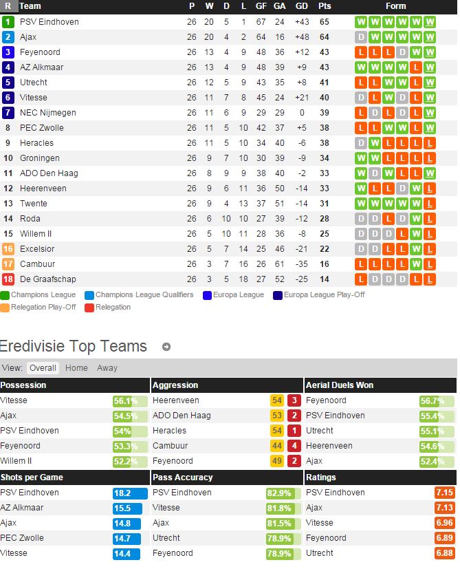 PSV 는 지난 라운드 흐로닝언 전에서 3-0 완승을 거두고 리그 1위를 지키고 있다. 리그 내에서는 공수 완벽한 경기력을 보여주고 있지만 이번 경기보다 다음 주중 AT 마드리드와의 챔스 경기에 좀 더 집중 할 가능성이 높다. 헤렌벤은 지난 라운드 위트레흐트 전에서 0-4 완패를 당하며 아쉬운 경기력을 보여주고 있다. 경기마다 선수들의 기복이 심하고 흔들리기 시작하면 걷잡을 수 없이 무너지는 경기력이 종종 나오고 있다.