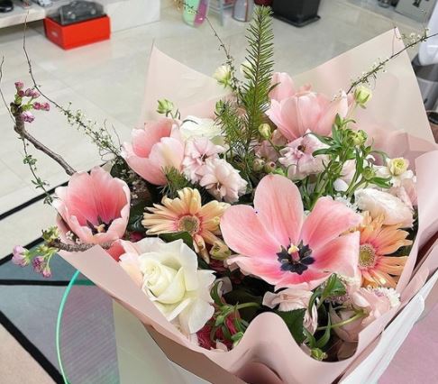 이와 함께 공개된 사진에는 선물로 받은 것으로 보이는 핑크색의 꽃다발이 보여졌다.