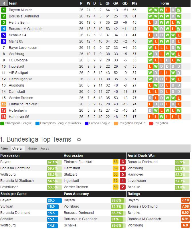 슈투트가르트는 지난 라운드 잉골슈타드 원정에서 3-3 무승부를 거두고 리그 11위에 머물러있다. 슈투트가르트는 디디아비를 중심으로 이루어지는 공격진은 좋은 활약을 보여주고 있지만 수비진의 여전히 불안하다. 레버쿠젠은 지난 라운드 함부르크 전에서 1-0 승리를 거두고 오랜만에 리그에서 승리를 거두었다. 레버쿠젠의 가장 큰 걱정거리는 주중 비야레알과의 유로파리그를 치러야 하기에 치차리토 같은 주전들을 대체할 만한 선수도 부족하고 체력적인 문제가 가장 걱정 된다.