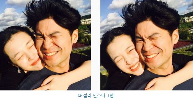 끝으로 설리는 화창한 풍경을 배경으로 하고 최자를 백허그하며 활짝 웃는 사진 2장을 올렸다.