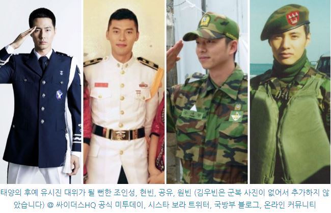 4월 4일 환경TV의 보도에 의하면 ‘태양의 후예’ 유시진 캐스팅을 거절한 배우로는 조인성, 원빈, 공유, 현빈, 김우빈 등으로 알려져 있다.