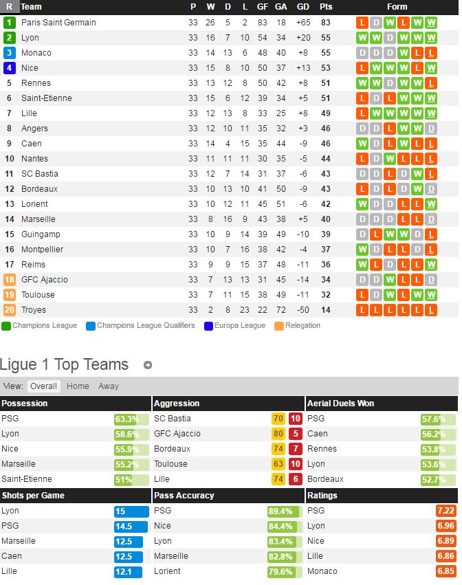모나코는 지난 라운드 릴에게 1-4 대패를 당하면서 리그 2연패로 리그 3위로 순위가 하락 하였다. 시즌 중후반에 들어서면서부터 선수들의 과부화 및 공격을 풀어줄만한 선수가 부족하면서 승점 쌓기에 실패하고 있다. 마르세유도 지난 라운드 보르도 전에서 0-0 무승부를 기록하면서 최근 리그 9경기 연속 승리를 얻지 못하고 있다. 최근 구단주에 대한 팬들의 비난이 거세지는 등 내외적으로 좋지 못한 분위기에 시달리고 있는 중이다.