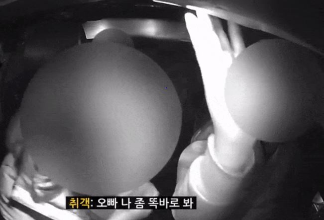 B씨는 점점 더 이상한 행동을 하기 시작했다. 갑자기 A씨의 얼굴을 만지면서 밀착하기 시작했다. 심지어 마스크를 벗고 그런 행동을 했다. B씨는 본격적으로 A씨에게 추파를 던지기 시작했다. B씨는 택시에 적혀있는 A씨의 이름을 부르더니 "오빠, 나 좀 똑바로 봐"라고 유혹하기 시작했다.