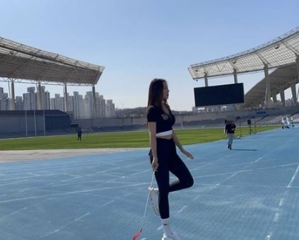 공개된 사진 속 신수지는 운동장 한가운데 서 있다. 몸에 밀착되는 운동복을 입은 그는 스키니한 몸매를 뽐내 눈길을 끌었다.