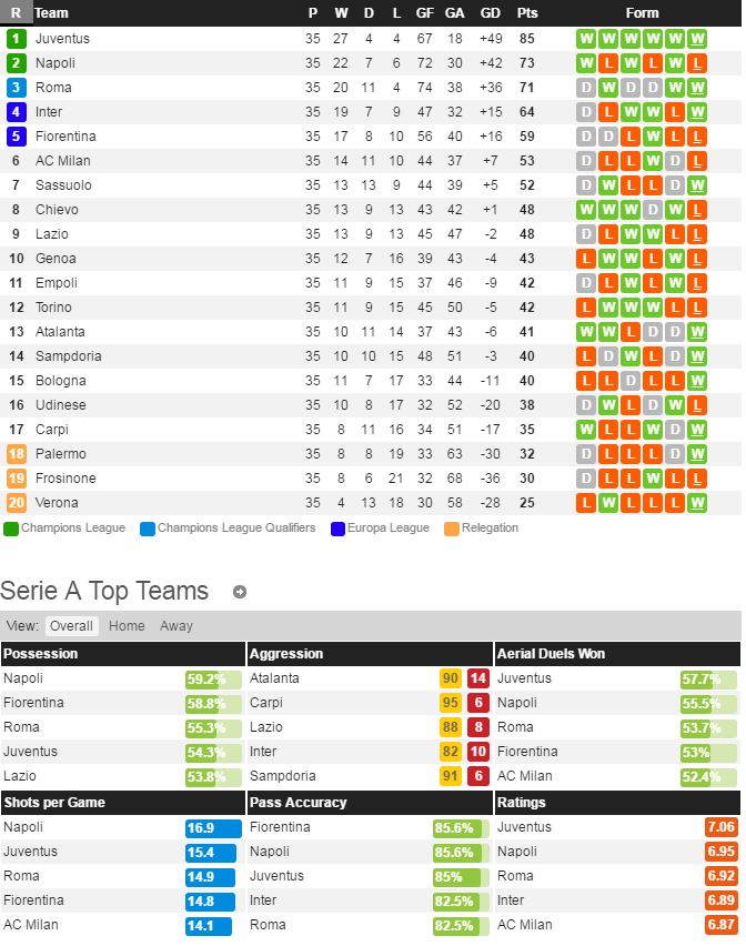 키에보는 지난 라운드 아탈란타 전에서 0-1 패배를 당하면서 리그 무패행진이 아쉽게 마감 되었다. 그러나 후반기 들어서 홈 경기에서 대단히 좋은 경기력을 보여주고 있고 최근 홈 6경기 무패행진 중이다. 반면 피오렌티나는 지난 라운드 유벤투스 전에서 1-2 패배를 당하면서 리그 5위에 머물러있다. 피오렌티나의 후반기 경기력은 실망 스럽고 일리치-클라니치 의 위력도 예전만 못한 느낌이다.