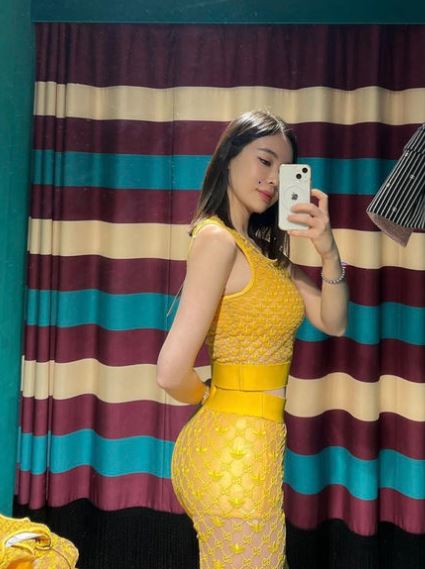 공개된 사진 속 양정원은 옐로우 컬러 의상을 입고 포즈를 취하고 있다.