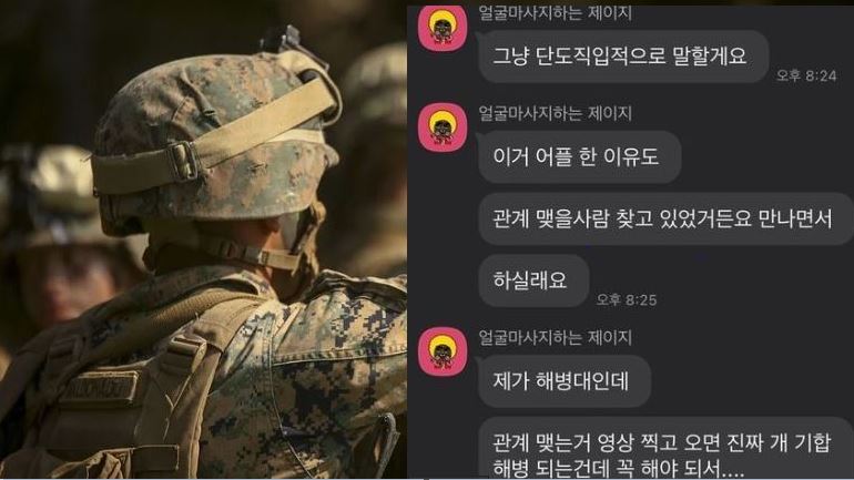 이어 "제가 해병대인데 관계 맺는 거 영상 찍어오면 진짜 X기합 해병 되는 건데 꼭 해야 한다"고 부탁했다.