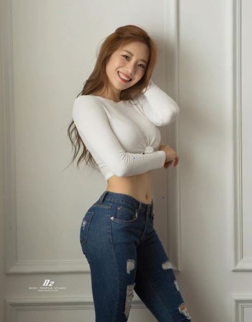 청바지 입은 피트니스 모델 심으뜸
