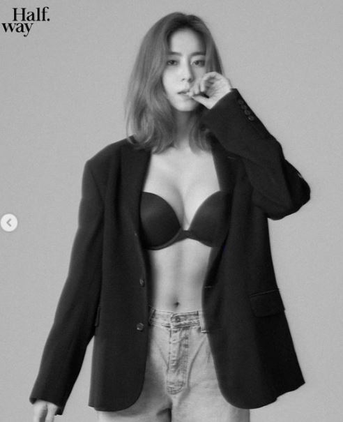 사진 속에는 몸매가 드러나는 흰 보디슈트를 입은 유이가 포즈를 취하고 있는 모습이 담겼다. 이어진 사진 속 유이는 브라톱을 입고 재킷만 걸친 파격적인 패션을 과시하고 있다.