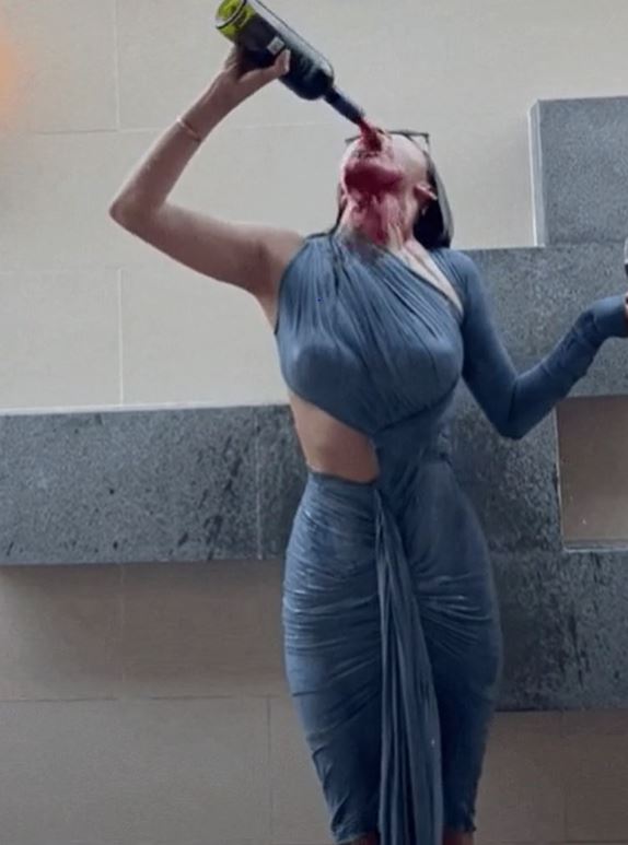 이후 그는 와인을 유리잔에 따른 뒤 갑자기 와인을 병째로 마시기 시작했다. 결국 와인이 입속에서 넘쳤고 온몸을 와인으로 샤워하고 말았다.