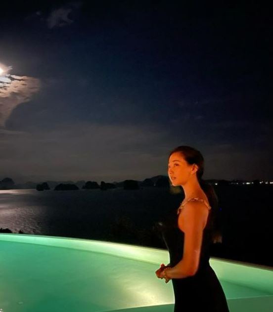 김사랑은 최근 개인 SNS를 통해 사진을 게재했다. 여기서 김사랑은 어깨를 드러낸 원피스를 입고 야외 수영장에서 포즈를 취하는 모습이다.