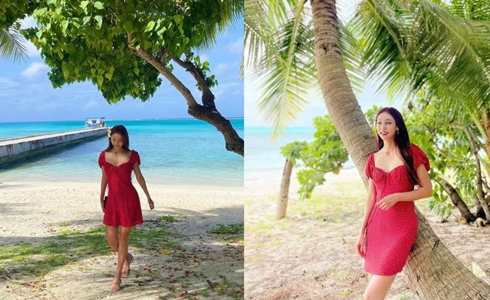 박지영은 최근 인스타그램을 통해 사이판에서 촬영한 사진을 게재했다. 여기서 박지영은 사이판의 아름다운 해변을 배경으로 매력을 뽐내고 있다. 레드 컬러의 오프숄더 미니 원피스를 완벽하게 소화, 우월한 기럭지와 아우라를 과시했다.
