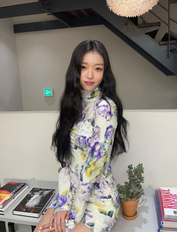 여기서 유아는 셔링 디테일과 커다란 꽃무늬로 페미닌한 무드를 자아내는 미니 원피스를 입고 새침한 표정을 짓고 있다. 그녀는 자연스러운 웨이브 머리스타일로 여신 미모를 뽐내 시선을 끌었다.
