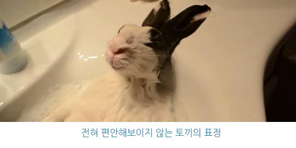 그렇다면 목욕하는 토끼는 어떻게 된 것일까? 사진 속 토끼는 사람이 목욕을 하는 것처럼 몸의 힘을 뺀 채 편안한 자세로 누워있다.