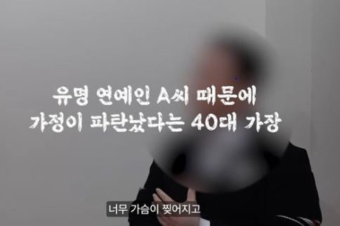 아이돌 그룹 멤버였던 연예인 A씨 때문에 한 가정이 파탄 났다는 주장이 나와 눈길을 끈다.