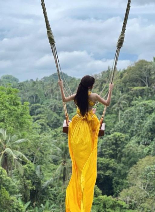 여기에는 은지가 노란 드레스를 입은 채 섹시하면서도 싱그러운 매력을 드러낸 모습이 담겼다. 그는 그네를 타며 여신같은 비주얼도 뽐냈다.