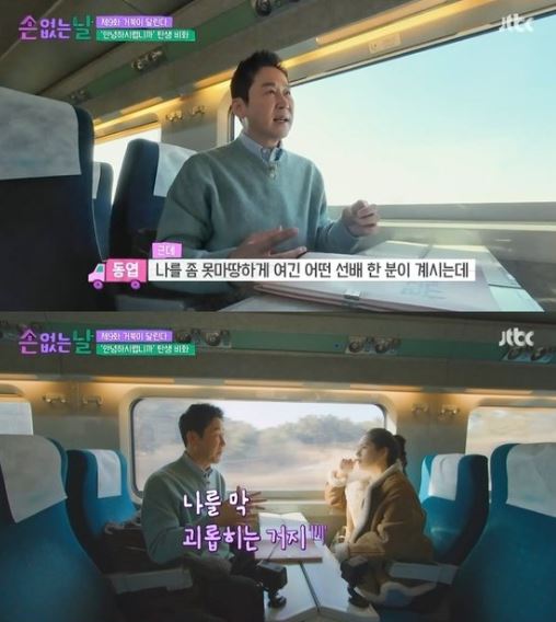그는 "그게 고정 코너가 된 거다. 그때 신인에게는 이런 게 있을 수 없는 일이었다"라며 "기차 안에서 콩트를 찍는데 중간에 NG가 나면 처음부터 다시 찍어야 했다. 기차 배경 화면이 나가기 때문에 NG 내면 이걸 이어서 붙일 수가 없었다"라고 말했다.
