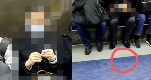 영상을 보면 사람들이 다닥다닥 붙어서 있는 혼잡한 객실에서 자리에 앉은 한 승객이 아래를 내려다보고 열심히 손톱을 깎는 모습이 보인다.