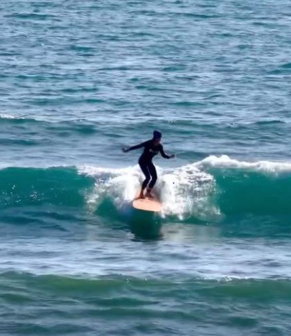 엄정화는 최근 인스타그램에 인도네시아 발리 바다에서 서핑을 즐기는 영상을 올렸다. 여기서 엄정화는 파도를 타고 오다 결국 크게 넘어지는 모습.