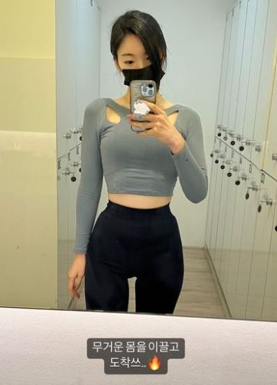 이다은은 최근 인스타그램에 "무거운 몸을 이끌고 도착"이라는 글과 함께 사진을 게재했다. 여기에는 이다은이 운동을 위해 레깅스를 입고 거울 속 자신을 촬영하는 모습이 담겼다.