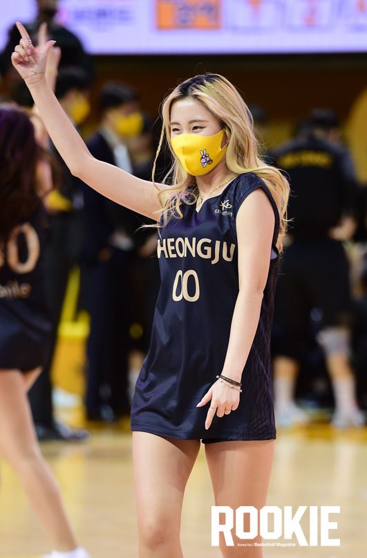 청주실내체육관에서 ‘신한은행 SOL 2022~2023 여자프로농구’ 청주 KB스타즈와 부산 BNK썸의 경기가 열렸다. 김한슬 치어리더가 KB스타즈를 응원하고 있다.