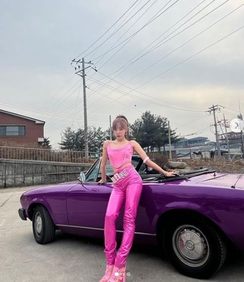 전신샷도 공개했다. 핫핑크 패션을 가뿐히 소화한 그는 우월한 비율을 자랑했다.