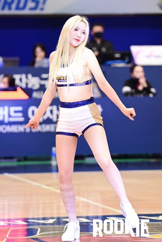 인천 도원체육관에서 ‘신한은행 SOL 2022~2023 여자프로농구’ 인천 신한은행과 부천 하나원큐의 경기가 열렸다. 이진 치어리더가 신한은행을 응원하고 있다.
