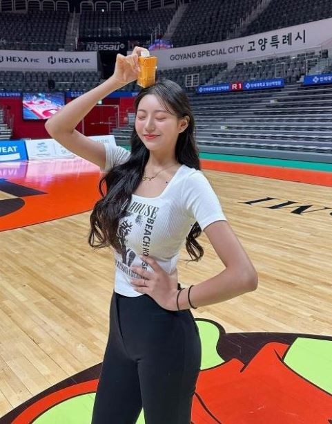 김이서 치어리더는 최근 인스타그램에 근황을 담은 사진 한 장을 게재했다. 이 사진에서 김이서 치어리더는 고양 캐롯 점퍼스의 홈구장 고양체육관에서 포즈를 취하고 있다.