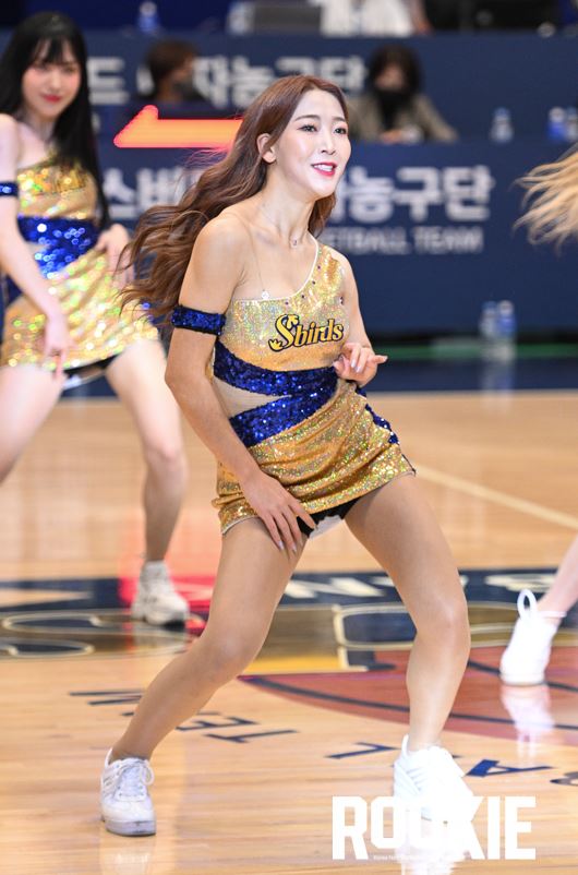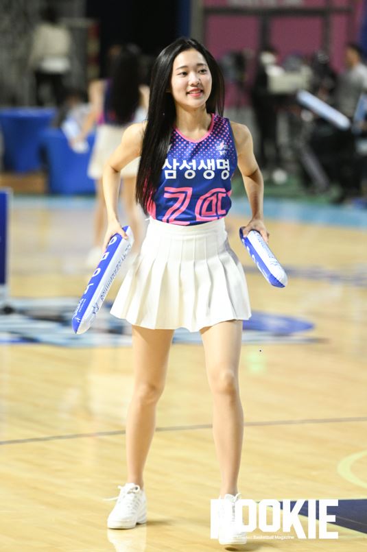 용인실내체육관에서 ‘신한은행 SOL 2022~2023 여자프로농구’ 용인 삼성생명과 부산 BNK썸의 경기가 열렸다. 이예빈 치어리더가 삼성생명을 응원하고 있다.