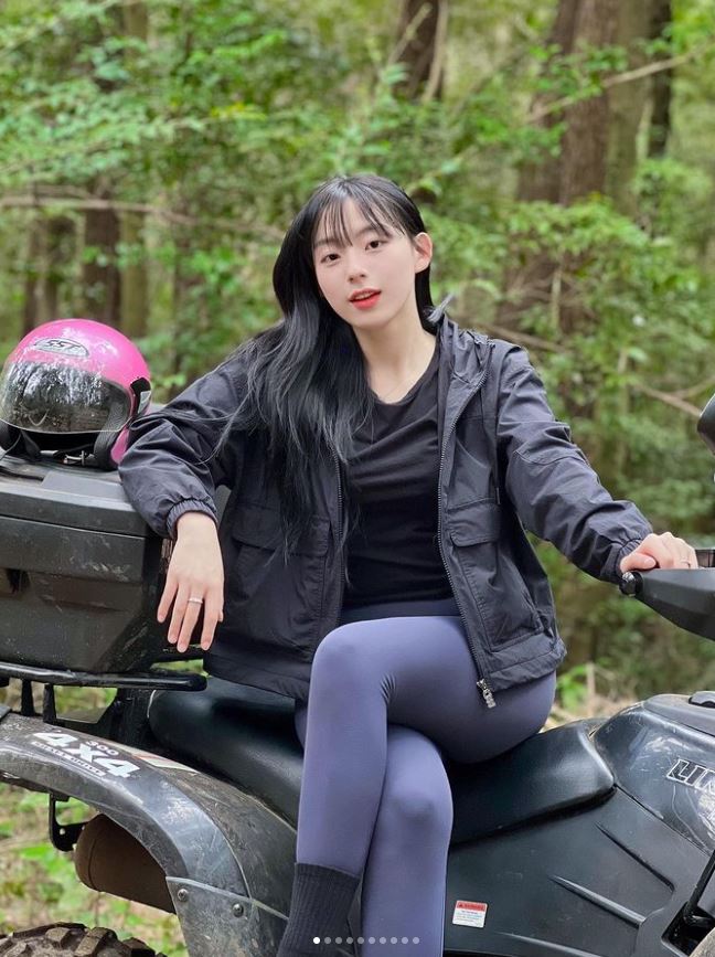 하지원 치어리더는 최근 인스타그램에 '나 운전에 소질 있는 듯'이라는 글과 함께 몇장의 사진을 공개했다. 사진 속 하지원 치어리더는 제주도로 추정되는 숲 속에서 4륜 규동 바이크에 몸을 싣고 있는 모습을 연출했다.