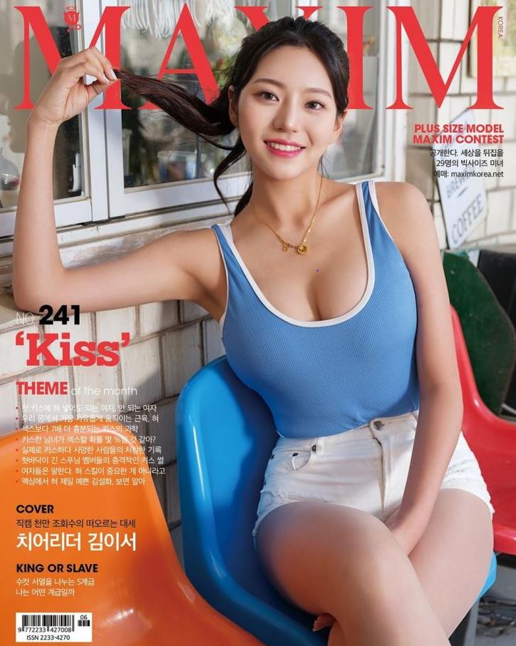 김이서 치어리더는 최근 인스타그램에 "제가 맥심 6월호 표지 모델이 되었습니다! 기쁘구요 기뻐요 고마워요 다들"이라는 글과 함께 세 장의 사진을 올렸다.