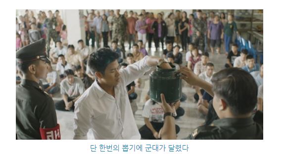 제비뽑기장에 모인 태국의 청년들은 앞사람이 제비 뽑는 것을 지켜보면서 '붉은색 표'가 나올 때마다 '환호성'을 내지른다. 앞사람이 붉은색 표를 많이 뽑을 수록 자신이 군대에 갈 확률이 줄어들기 때문.
