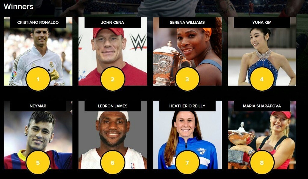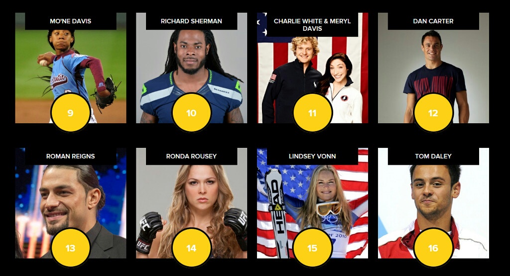 4위에 '연느' 김연아가 당당히 이름을 올리고 있네요. 네이마르, 샤라포바 보다도~