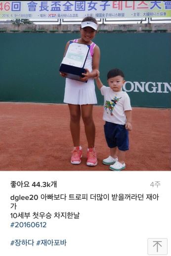 아빠가 지켜보는 가운데 금메달을 목에 건 재아 양은 "매우 기쁘다. 앞으로도 열심히 노력해서 세리나 윌리엄스처럼 좋은 선수가 되겠다"고 소감을 밝혔다.