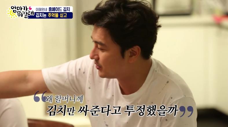 아내가 담근 김치를 먹던 안정환은 문득 젓가락질을 멈추더니 "할머니가 도시락에 김치만 싸주면 왜 그렇게 욕을 했는지, 내가 한스럽다"며 자신의 지난날을 회상했다.