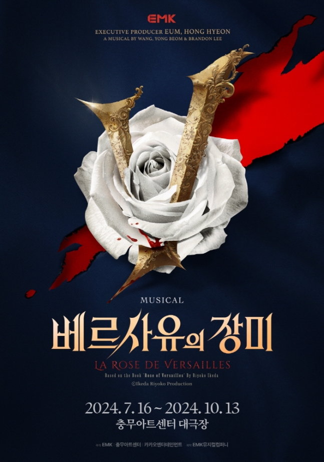 EMK 뮤지컬컴퍼니가 선보이는 뮤지컬 '베르사유의 장미'가 오는 7월 16일 서울 충무아트센터 대극장에서 세계 최초로 막을 올린다. 이케다 리요코의 동명 만화를 원작으로 한 이 작품은 프랑스 혁명을 배경으로 '오스칼'이라는 가상 인물을 통해 자유와 사랑, 인간애를 그려내고 있다.