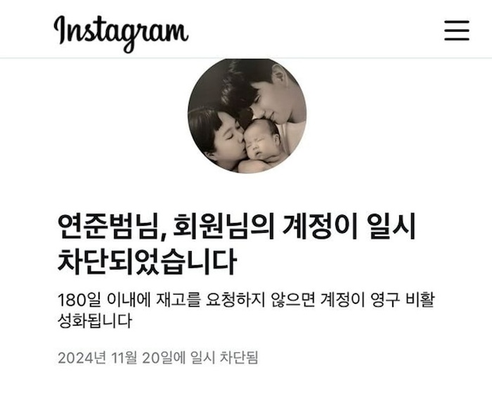 방송인 제이쓴과 개그우먼 홍현희 부부의 아들 준범 군의 SNS 계정이 정지됐다.