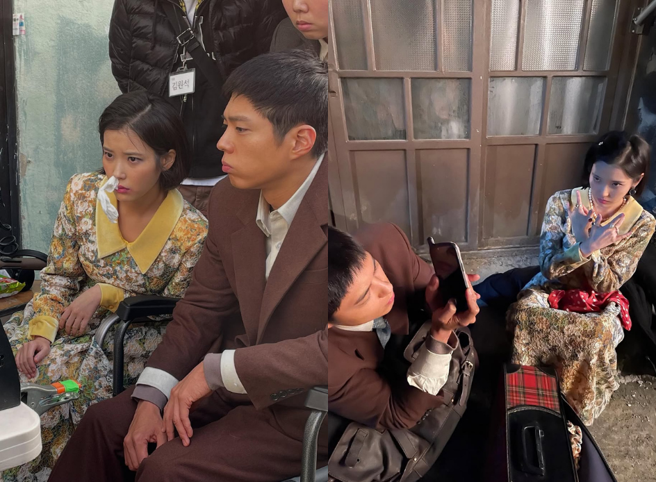 공개된 사진 속에서 아이유는 교복을, 박보검은 추리닝을 입은 채 환한 미소를 짓고 있다. 또 다른 사진에서는 촬영 쉬는 시간에도 박보검이 아이유의 사진을 찍어주는 모습이 포착돼 훈훈함을 자아냈다. 극 중 ‘순애보’ 관식이를 연기하는 박보검의 모습과 겹쳐지며 팬들의 이목을 끌었다.