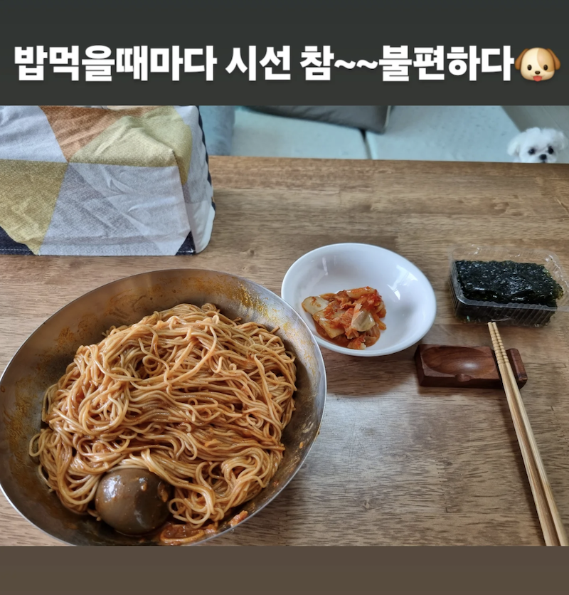 13일, 구성환은 자신의 SNS에 "밥 먹을 때마다 시선 참~~ 불편하다??"라는 글과 함께 한 장의 사진을 올렸다. 사진 속에는 맛있게 비빈 냉면 한 그릇과 김치, 김이 가지런히 놓인 식탁이 담겨 있다. 하지만 평화로운 식사의 분위기는 오래가지 않았다.