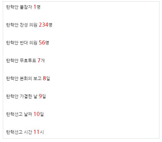 해당 글에는 탄핵 관련 숫자들이 나열돼있었다.