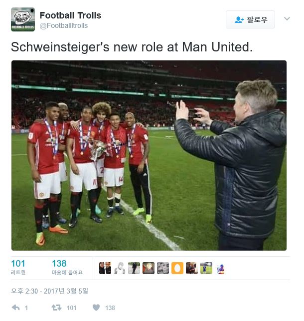 [비트스포츠=박재수 기자] 맨체스터 유나이티드 역사상 최초의 독일 선수는 누구일까요. 넵~바스티안 슈바인슈타이거입니다. 맨유에 호세 무리뉴 감독이 부임한 이후 좀처럼 얼굴 보기가 쉽지 않습니다. 이미 독일 대표팀에서는 은퇴식까지 치렀답니다.