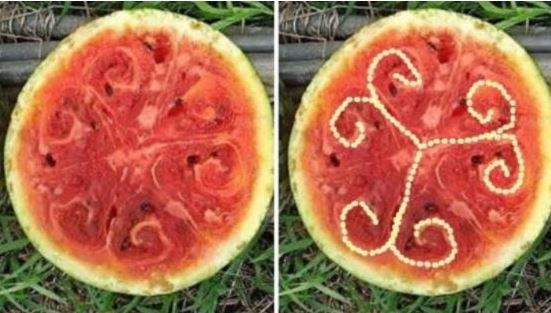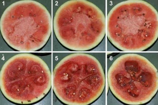 모자이크 병에 걸린 수박은 단면에 '3'과 흡사한 회오리 모양의 무늬가 규칙적으로 나타난다.