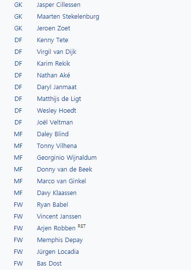 <스코틀랜드, 네덜란드 소집 명단>