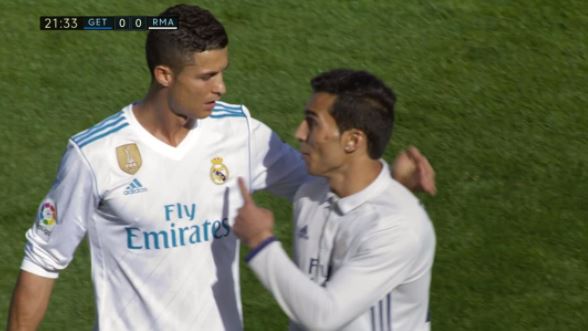 [사진] 경기장에 난입한 호날두 코스프레 팬이 경찰에 연행되고 있다.(온라인커뮤니티)
